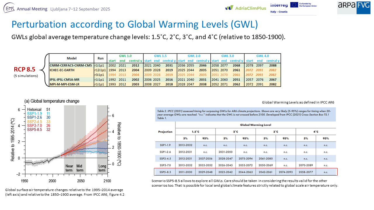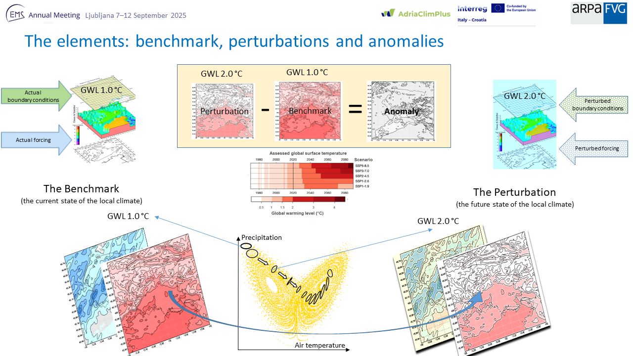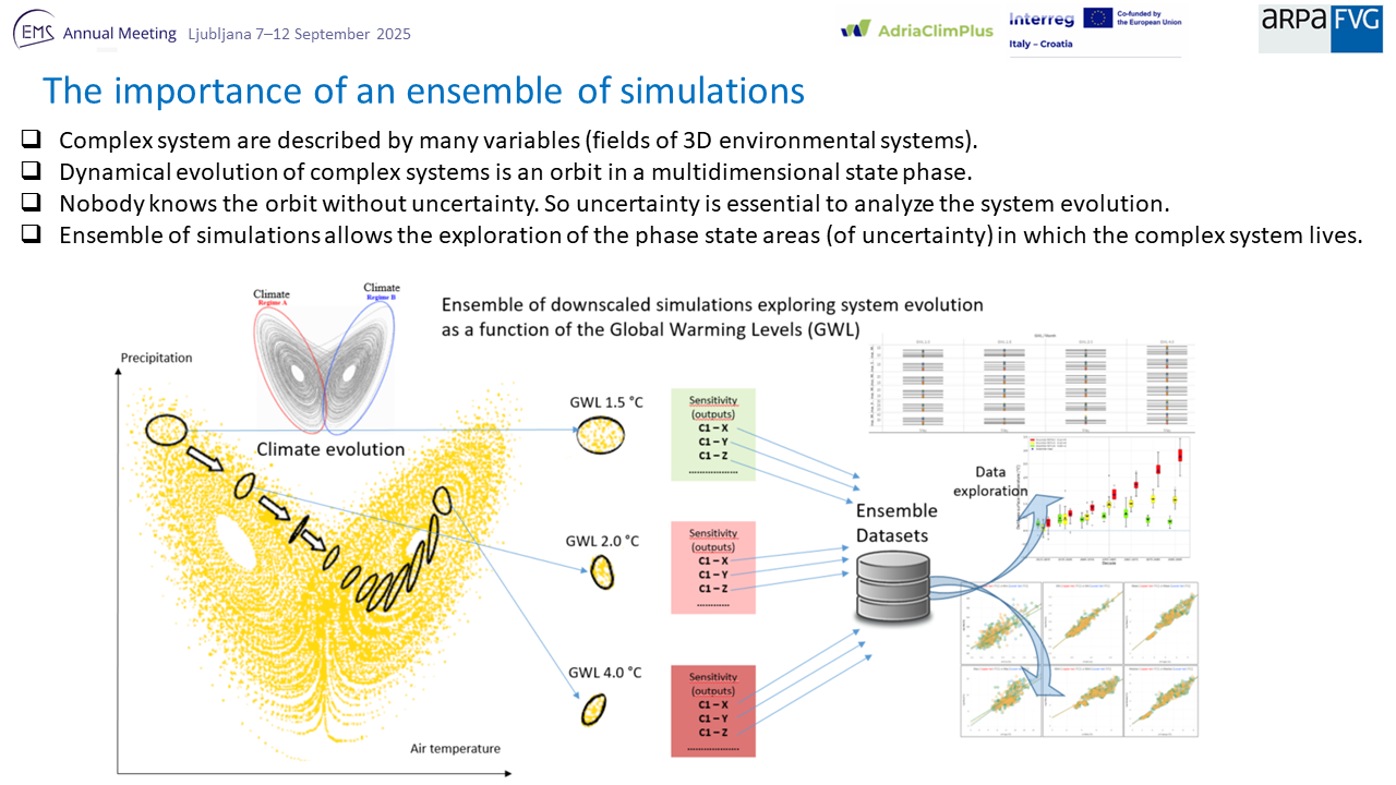 The presentation highlighted the importance of downscaling global and regional climate scenarios to extremely high spatial resolution for local stakeholders. It explained the links between global climate change and local-scale climate responses, emphasized the critical role of simulation ensembles for exploring future climate, and described the methodology developed by ARPA FVG to generate ensembles of high-resolution simulations within the AdriaClimPlus project framework.