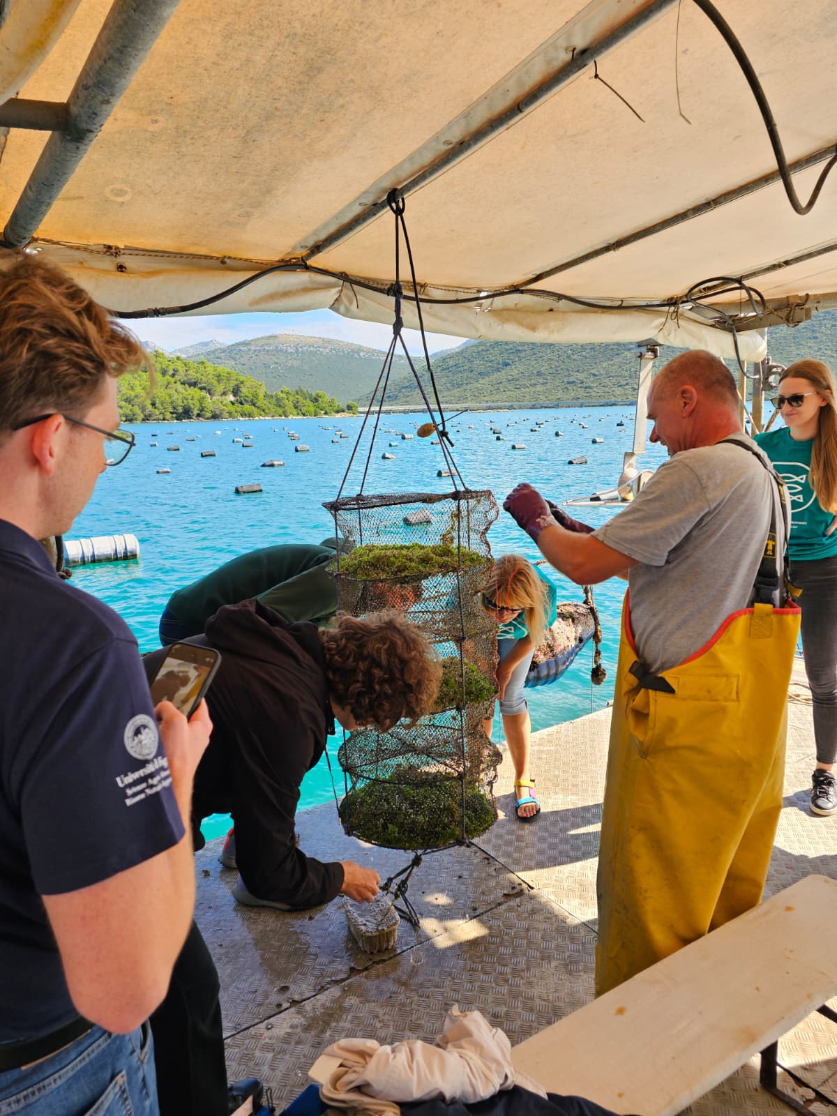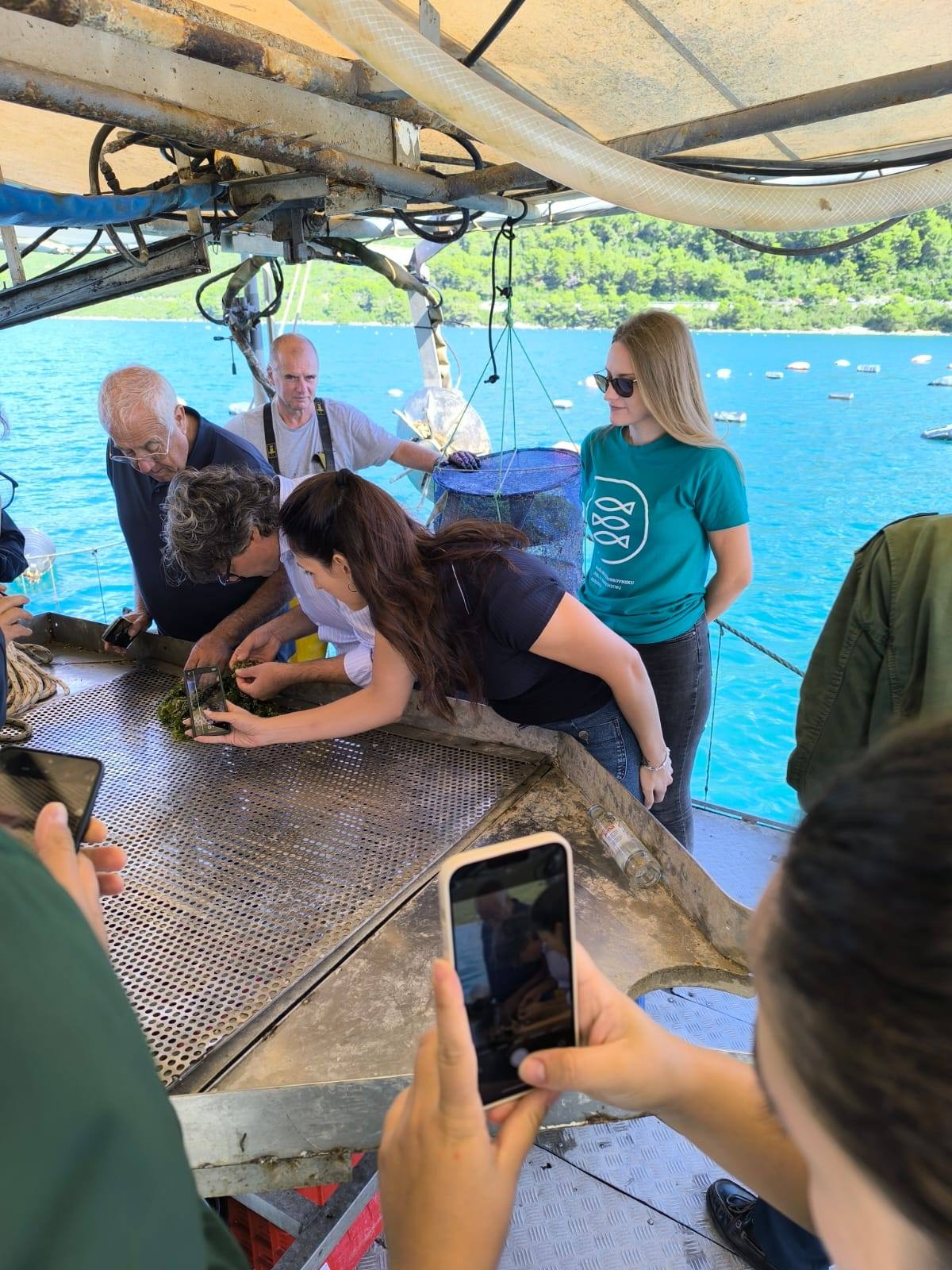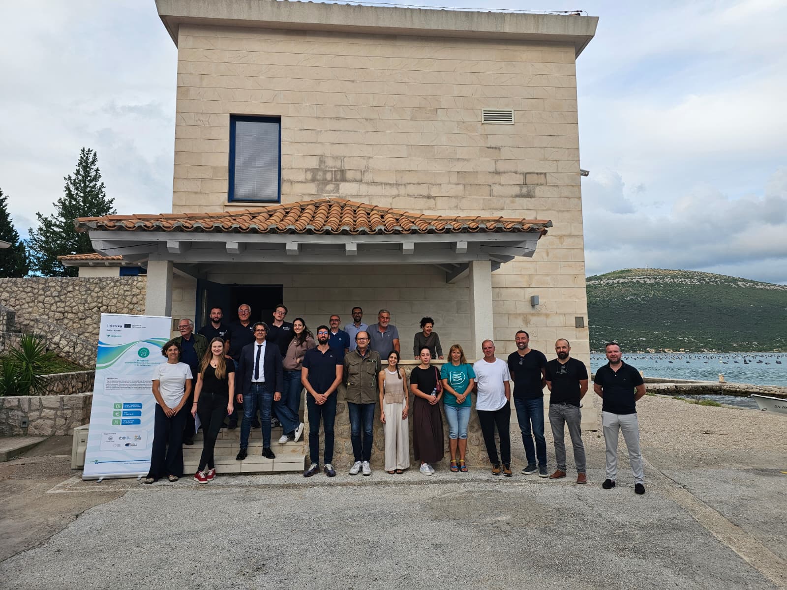 On Thursday, 25 September, activities continued at the University of Dubrovnik’s Mariculture Laboratory in Bistrina with the first Joint Testing Event, which started with institutional greetings and a welcome note by Prof. Kruno Bonačić, Head of the Mariculture Laboratory, followed by an update on IMTA implementation in Mali Ston Bay, including current progress and operational challenges. The field session then focused on presenting the experimental procedures for algae and bivalve cultivation at the Banja pilot site, allowing participants to observe how integrated multi-trophic aquaculture is being applied under real marine conditions