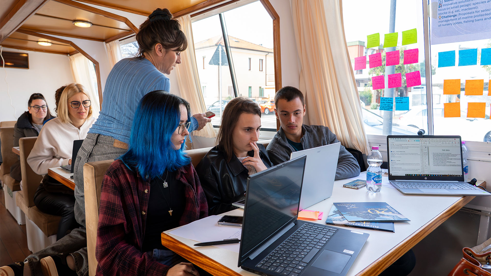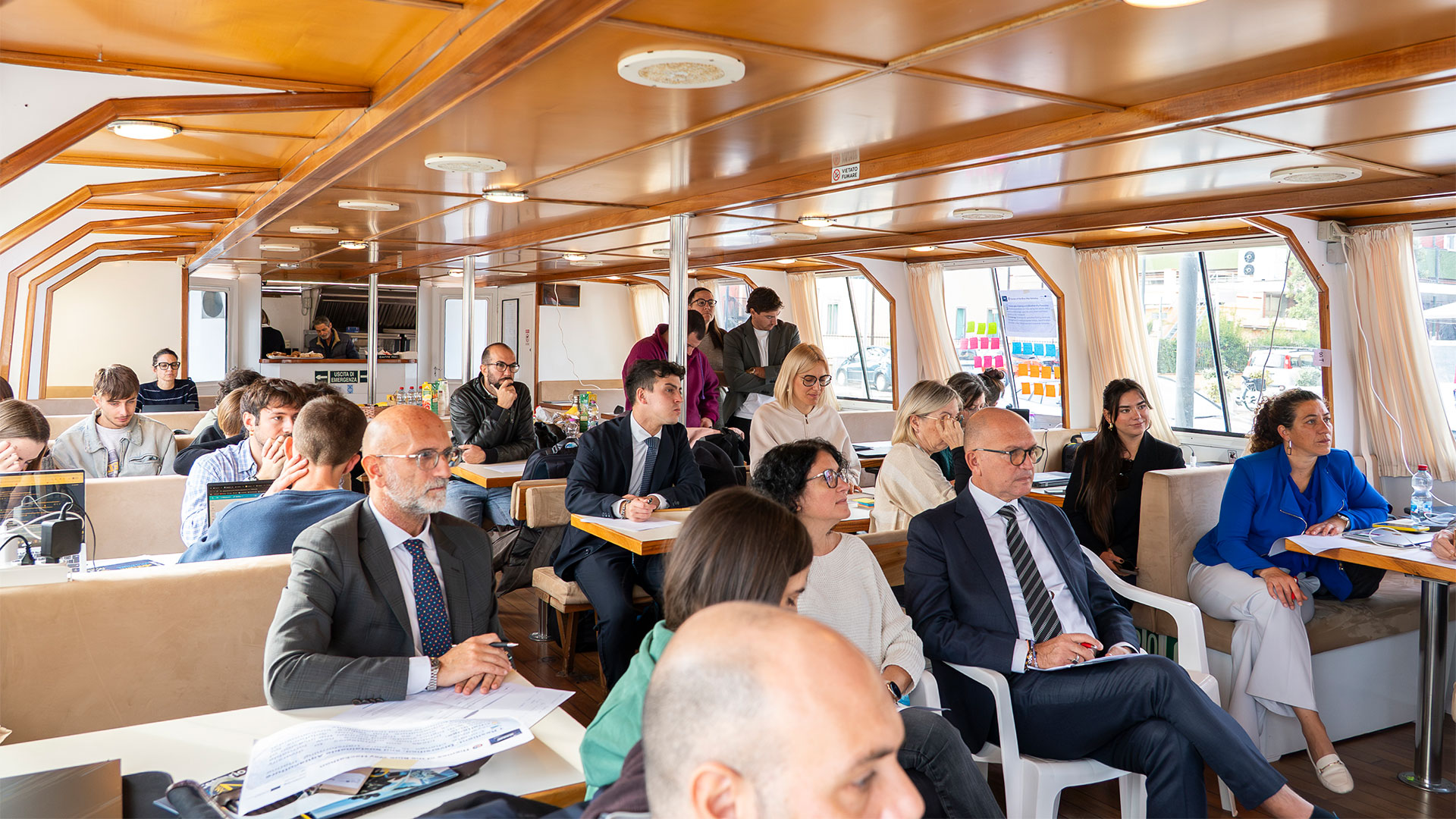 Three thematic challenges within the “Fisheries and Aquaculture Cluster” were launched,guiding participants to develop innovative, feasible, and sustainable solutions. 3 Multidisciplinary teams composed of students, young professionals, and industry experts then moved to the Canal Port of Rimini, aboard the Bella Rimini motor ship, transformed into a floating innovation lab. Under the guidance of mentors and tutors from partner institutions, participants worked day and night developing project ideas, conducting feasibility studies, and preparing final presentations.