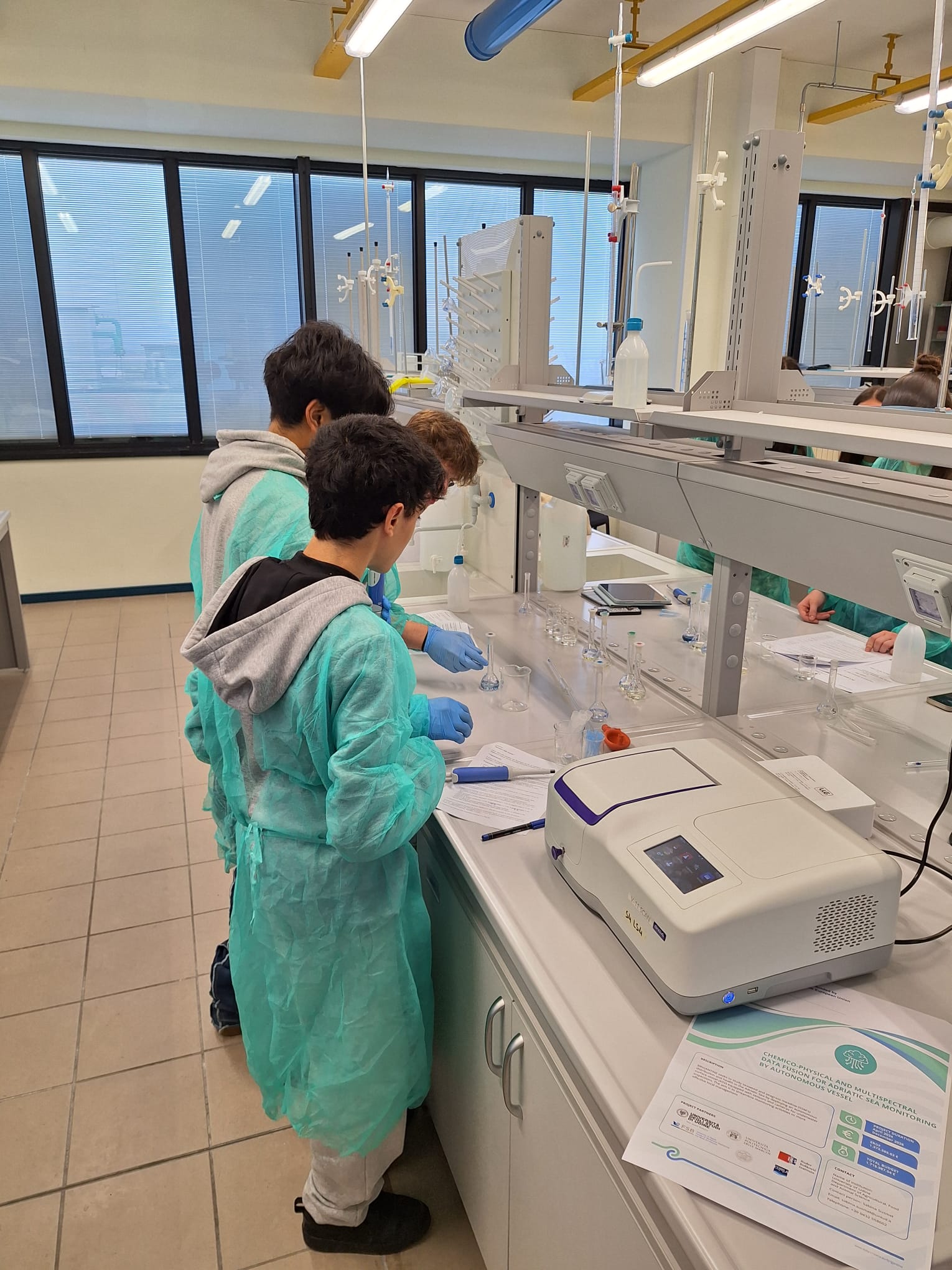 The Polytechnic University of Marche, with Professor Anna Annibaldi and Stefano Accoroni, guides students into the world of “nutrients and algae,” using microscopes and spectrophotometric analysis for the chemical determination of nutrients in water.