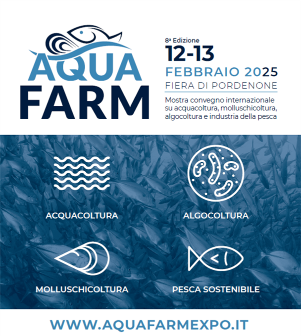 sarà presente con un proprio stand ad AQUAFARM- Mostra convegno internazionale su acquacoltura, molluschicoltura, algocoltura e industria della pesca che si svolgerà il 12 e il 13 febbraio 2025 presso Pordenone Fiere.