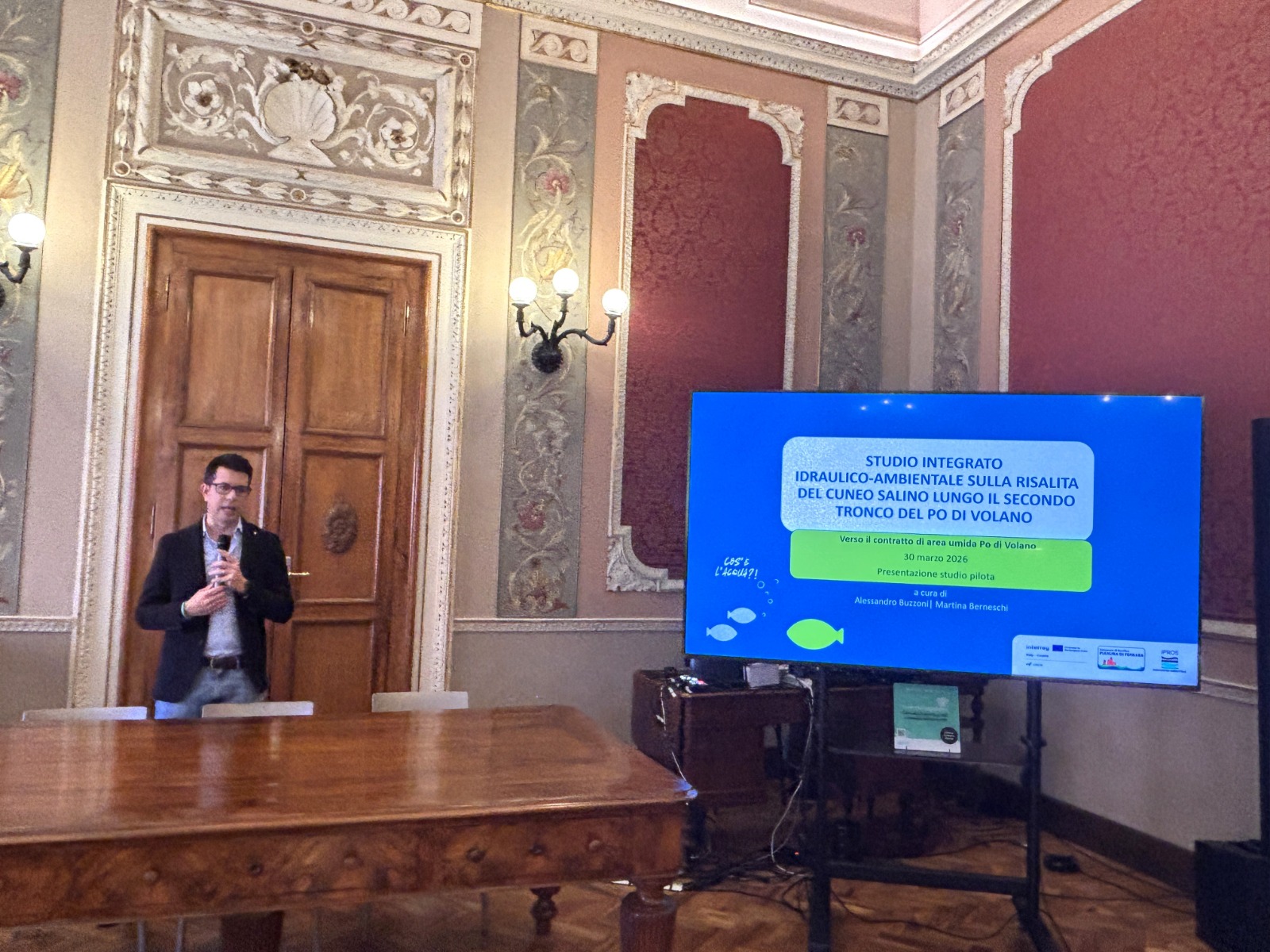 Alessandro Buzzoni, Director of the Territory Area of the Consortium, then presented the results of the pilot project under GREW: a hydrodynamic study with 3D modelling of salt wedge intrusion in the final stretch of the Volano River. “Saltwater intrusion in the final stretch of the Volano affects an area of nearly six thousand hectares within the Consortium’s irrigation basin,” said Buzzoni. “It is therefore essential to study in detail how saltwater moves upstream. Thanks to this modelling, we can develop different intervention scenarios and predict the impact of planning choices on water quality and, consequently, on the territory.”