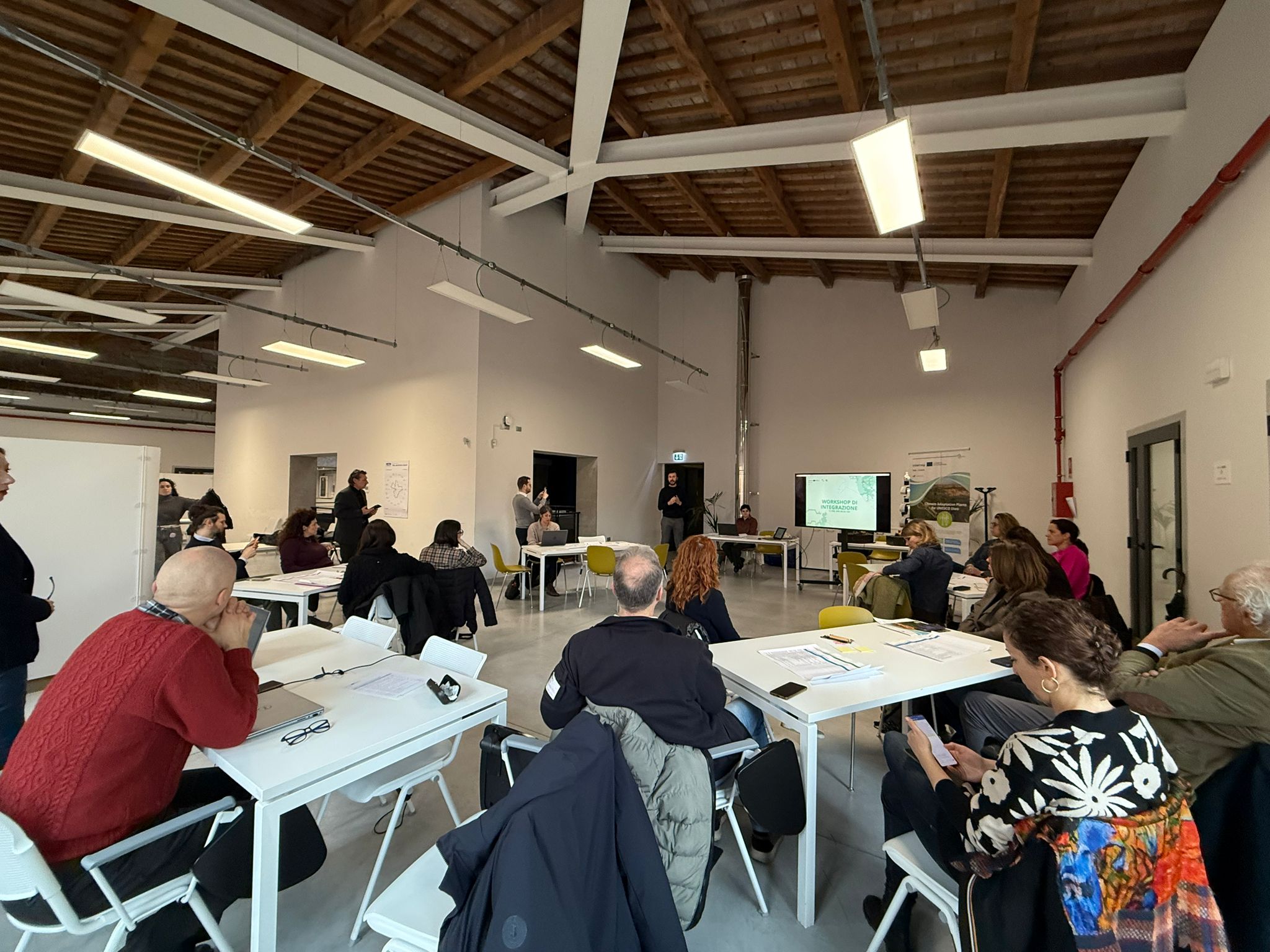 On 11 February 2026, stakeholders from across institutions and sectors gathered in Ferrara for the integration workshop which focused on the validation and refinement of the draft of the Climate Adaptation Plan (CAP) for the World Heritage site “Ferrara, City of the Renaissance and its Po Delta.”. The workshop, facilitated by consultant Farah Makki within the CAMPUS Living Lab, brought together more than fifteen representatives from local government, technical offices, cultural heritage institutions, environmental organizations, and regional stakeholders. As an introduction, consultants Chiara Ferrara and Filippo Lenzerini from Punto 3 SRL presented the logical framework and the full set of 61 adaptation measures proposed in the CAP. Participants then worked collaboratively in facilitated sessions to discuss and evaluate the measures across four thematic areas: