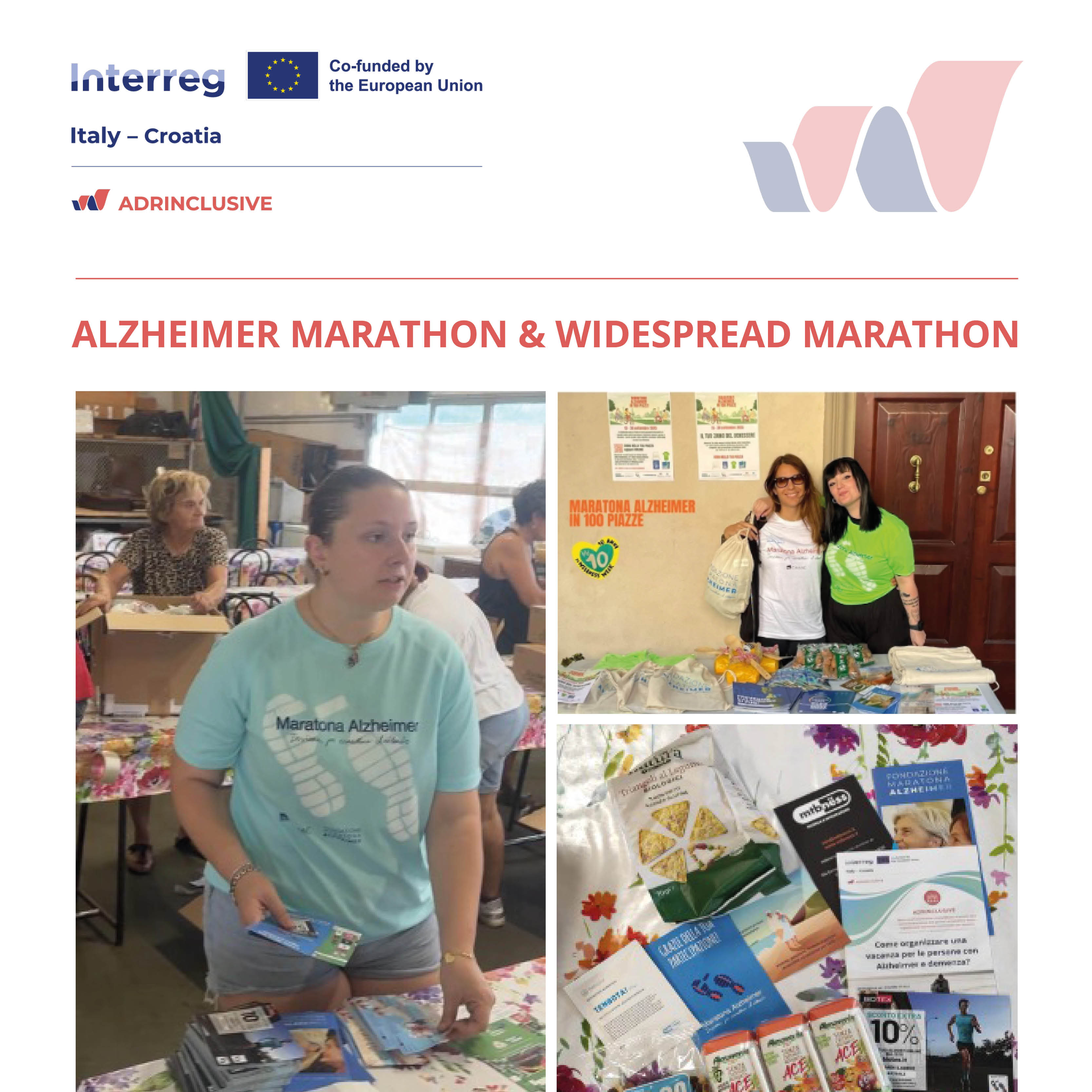 During the promotion of the event, the ADRINCLUSIVE project was highlighted through both online and offline communication materials. A copy of the project brochure was included in the race kits distributed to all Half Marathon participants (1,000) and Virtual participants (300). In addition, brochures were distributed to approximately 4,500 participants in the Alzheimer March with the support of volunteers and through an “ADRINCLUSIVE INFOPOINT”set up in the event village at Parco di Levante in Cesenatico.
