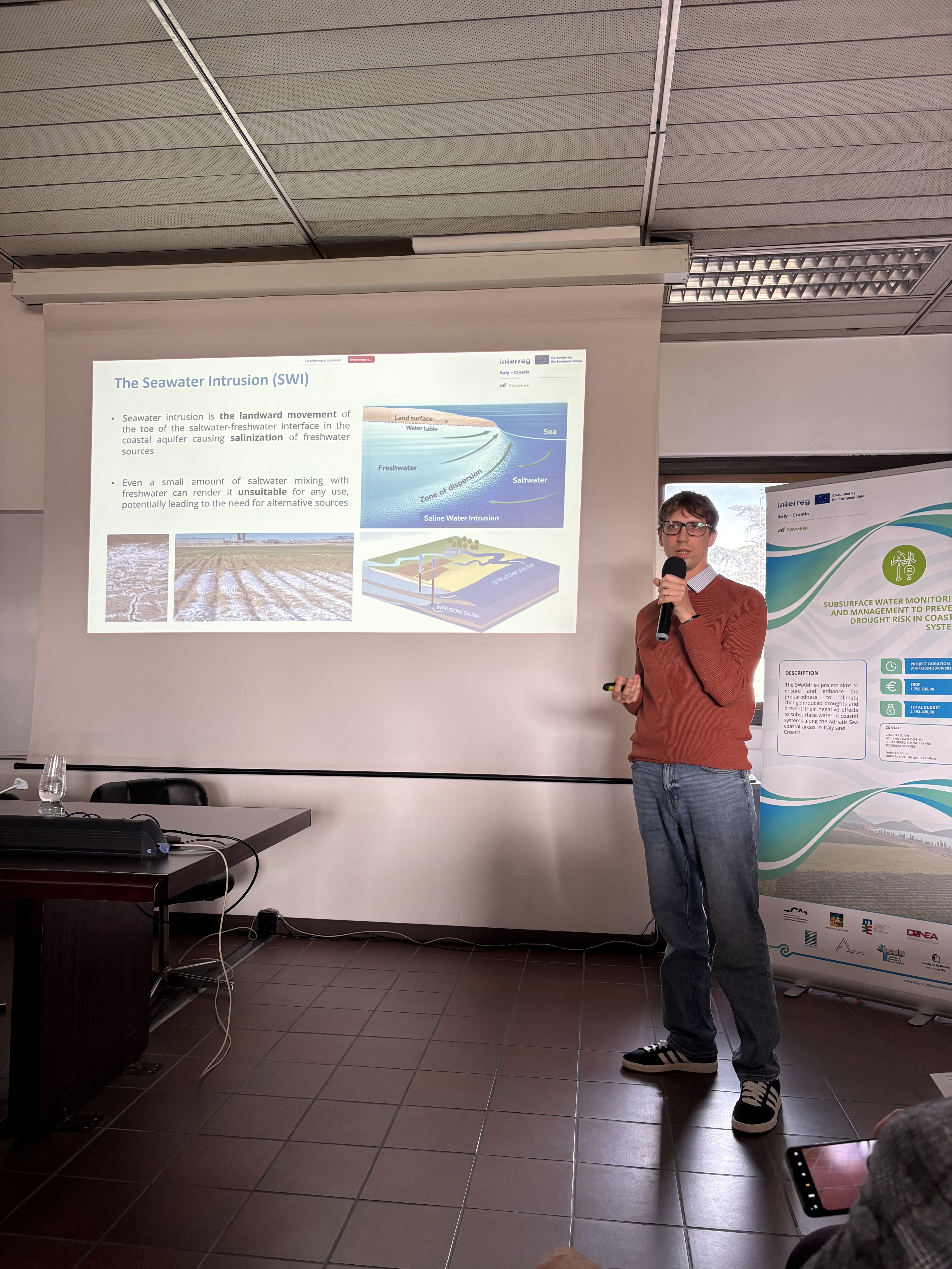 On 5 March 2026, the SWAMrisk project organised a Mini-Scientific Conference titled “Salinisation and Drought in Coastal Aquifers: From Monitoring to Sustainable Management” at the CNR-IGG headquarters in Padua, Italy. The event gathered researchers and experts working on groundwater monitoring, coastal aquifers, drought risk and climate change impacts.
