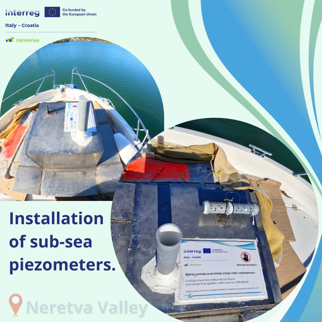 As part of the SWAMrisk project, the project team has successfully completed the installation of sub-sea piezometers in the Neretva delta, further strengthening the monitoring infrastructure for groundwater and surface water systems.