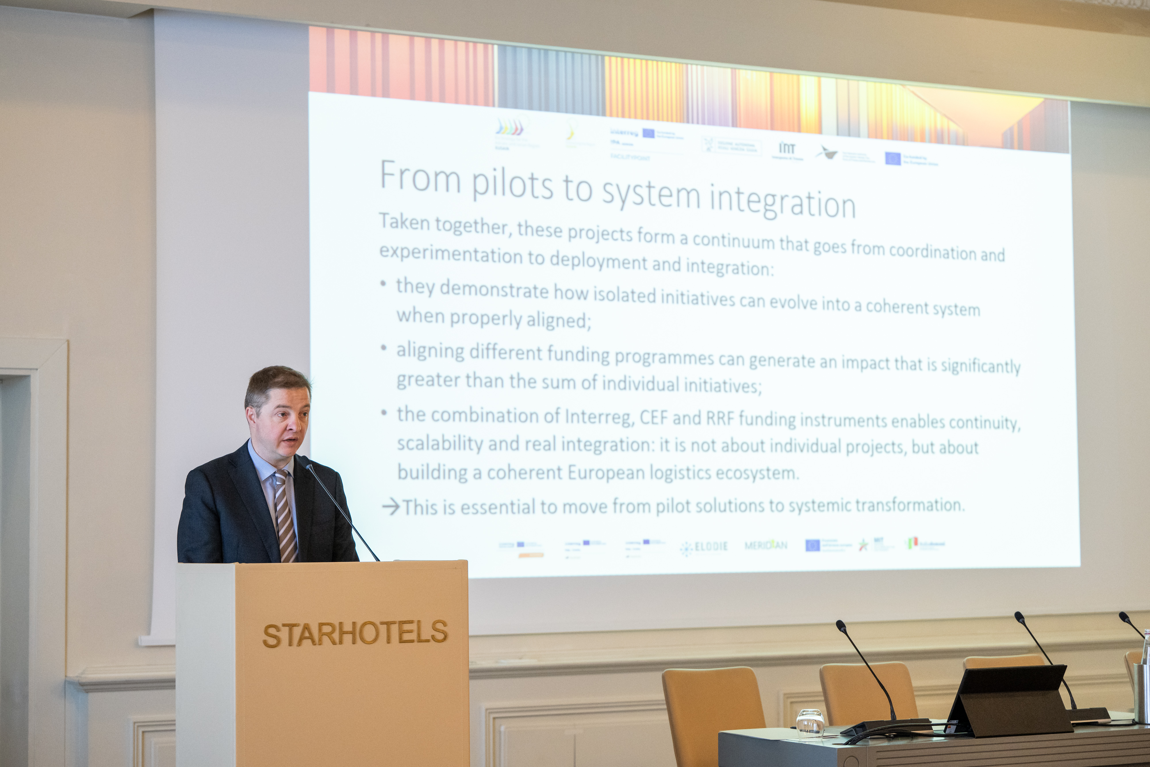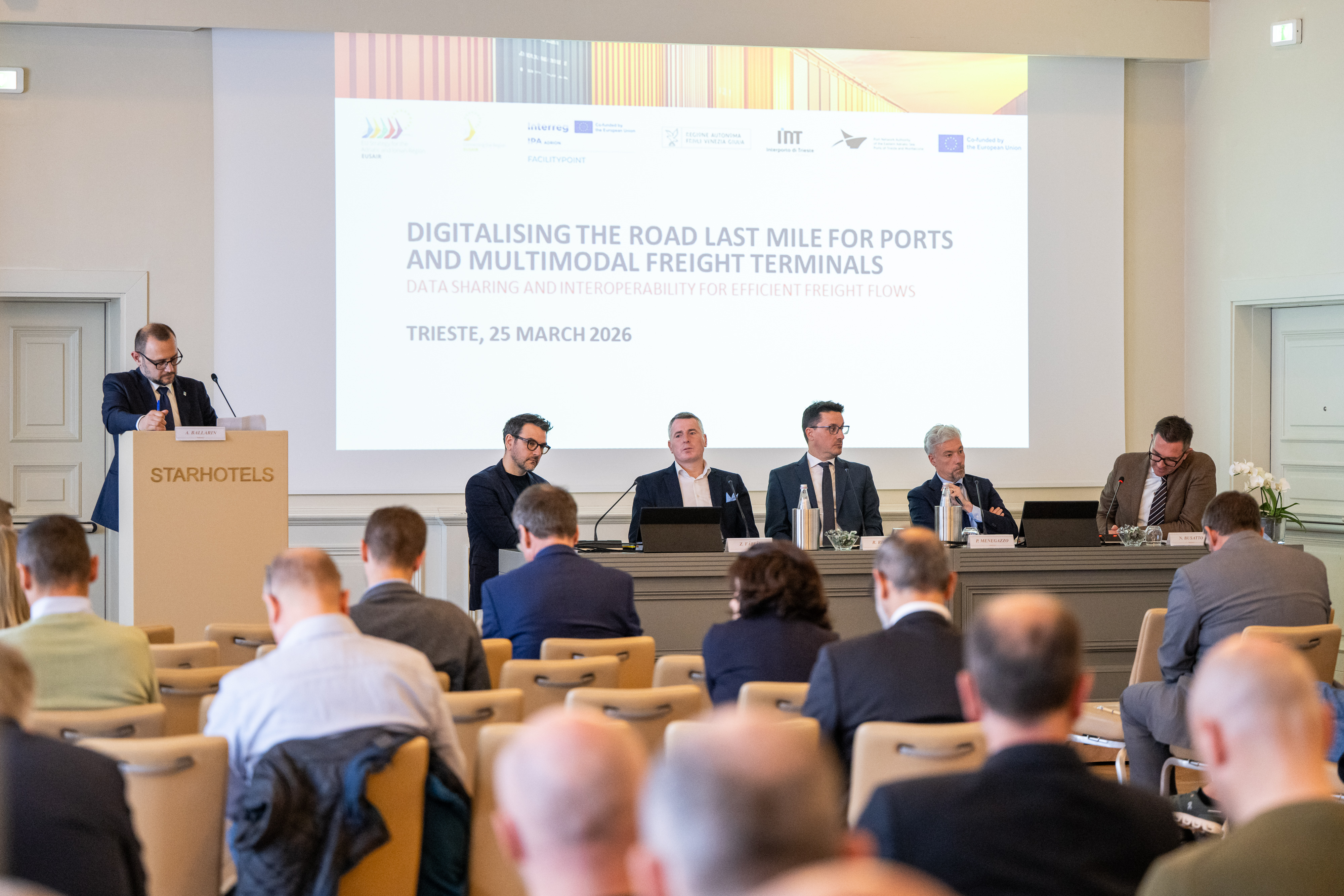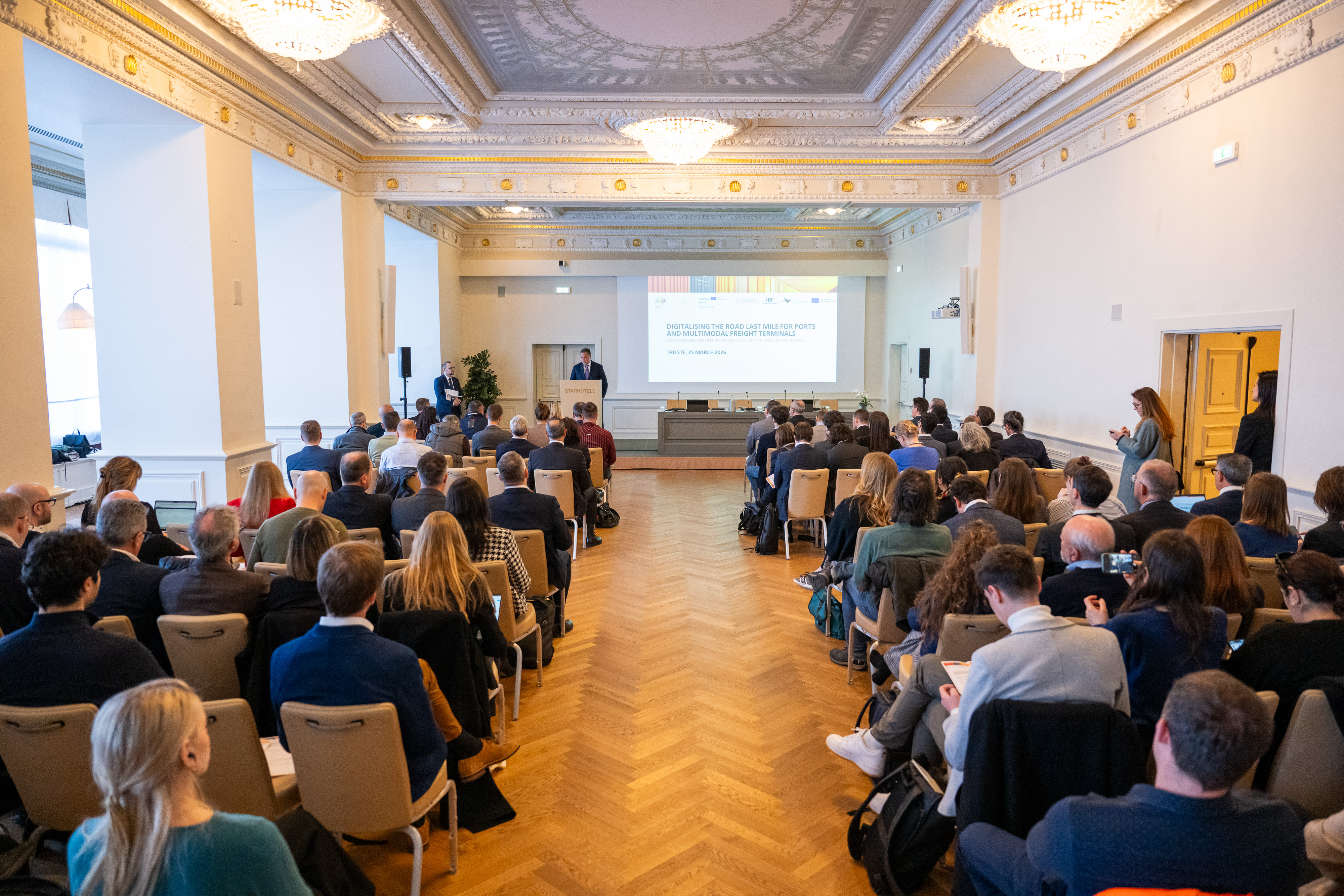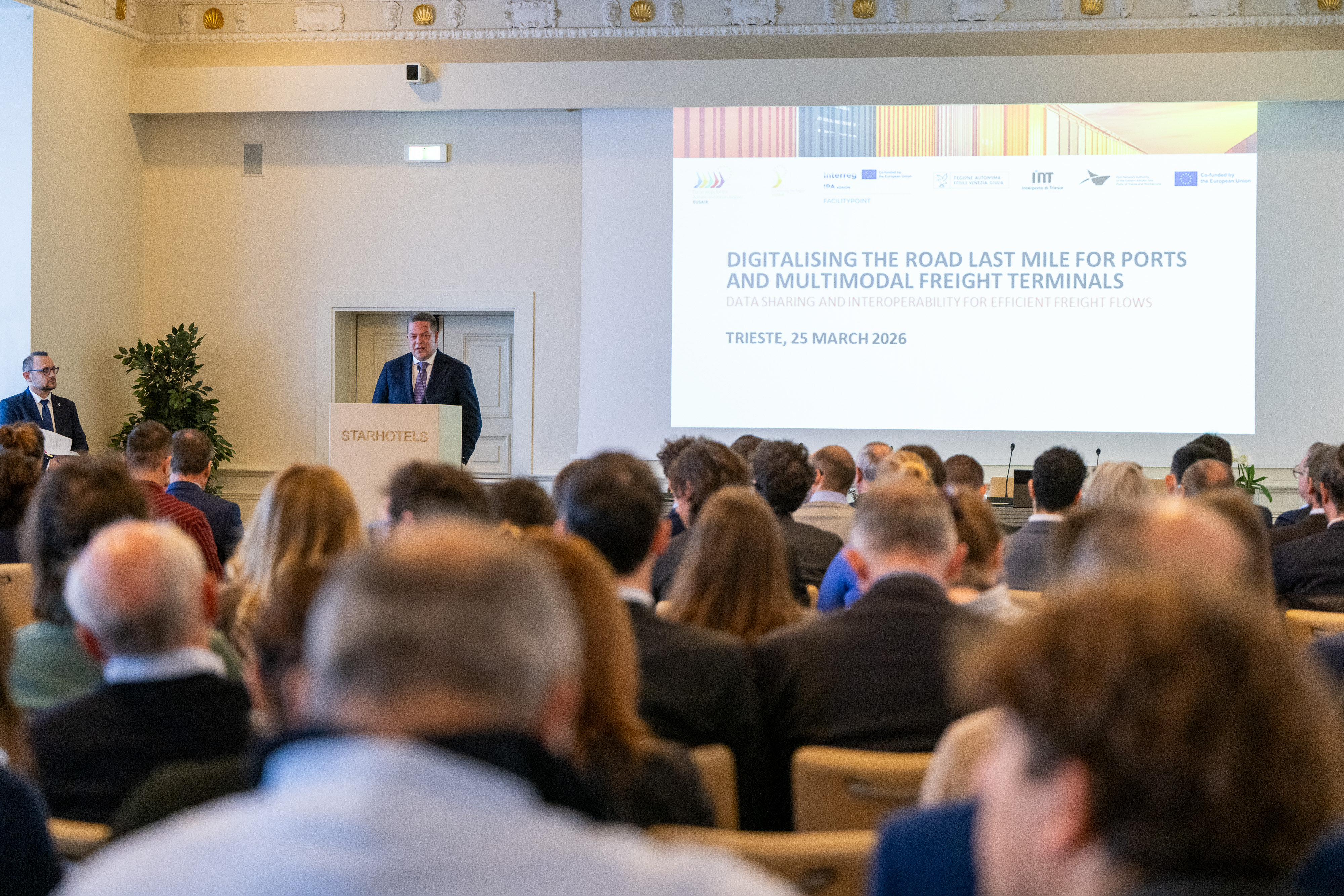 The event brought together key local stakeholders, including the Autonomous Region of Friuli Venezia Giulia, Interporto di Trieste, the German Federal Ministry for Digital and Transport, authorities and operators from several European countries – Germany, Port of Hamburg, the Netherlands, Latvia, Belgium, Ireland, and Italy – as well as cities such as Hamburg and Amsterdam, and leading institutions from the European road and port sectors. The event also saw the participation of EUSAIR representatives, EU Corridor representatives, and two Joint Secretariats of Interreg Italy–Croatia and Interreg Central Europe.