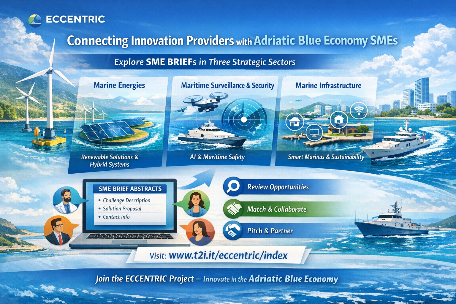 The ECCENTRIC project invites innovation providers, research groups, technology developers and digital solution providers to collaborate with SMEs from the Adriatic blue economy.