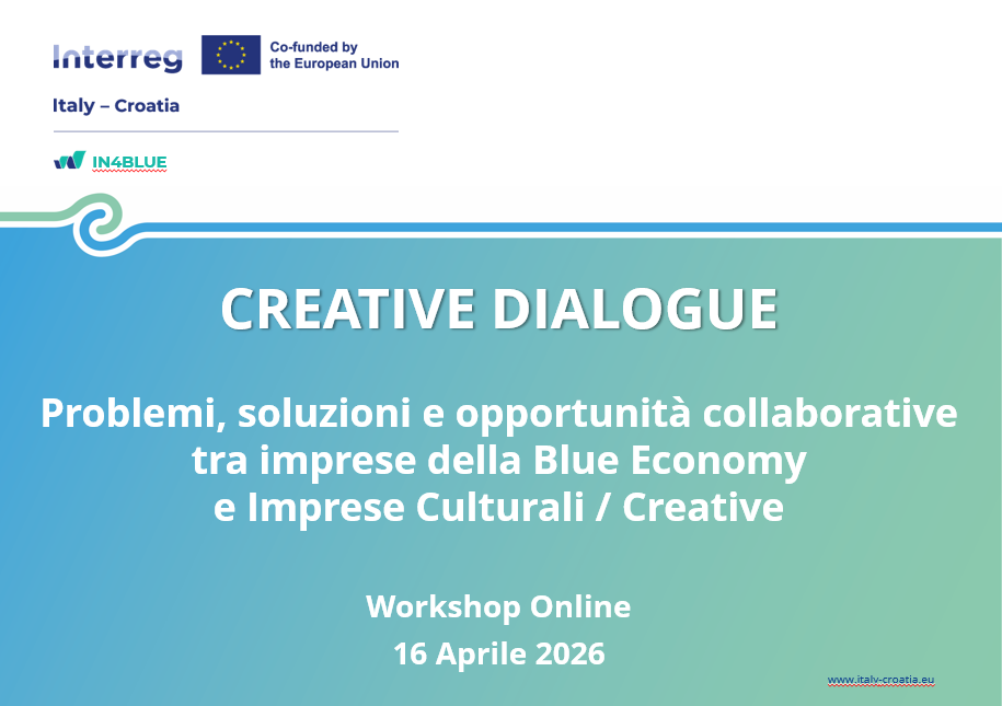 On April 16, 2026, TECNOPOLIS hosted the Creative Dialogue workshop, a strategic online event organized as part of the IN4BLUE project, co-funded by the Interreg Italy-Croatia cooperation program.