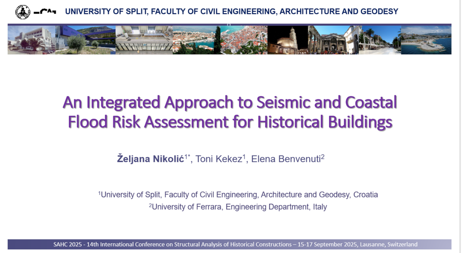 The paper, produced within the STRENGTH Project, “An integrated approach to seismic and coastal flood risk assessment for historical buildings” (authors: Željana Nikolić, Toni Kekez, Elena Benvenuti), presented at the 14th International Conference on Structural Analysis of Historical Constructions (SAHC 2025) in Lausanne in September 2025, has been published on Springer Nature Link as a book chapter in “Structural Analysis of Historical Constructions” (eBook ISBN 978-3-032-13469-1, Print ISBN 978-3-032-13468-4).