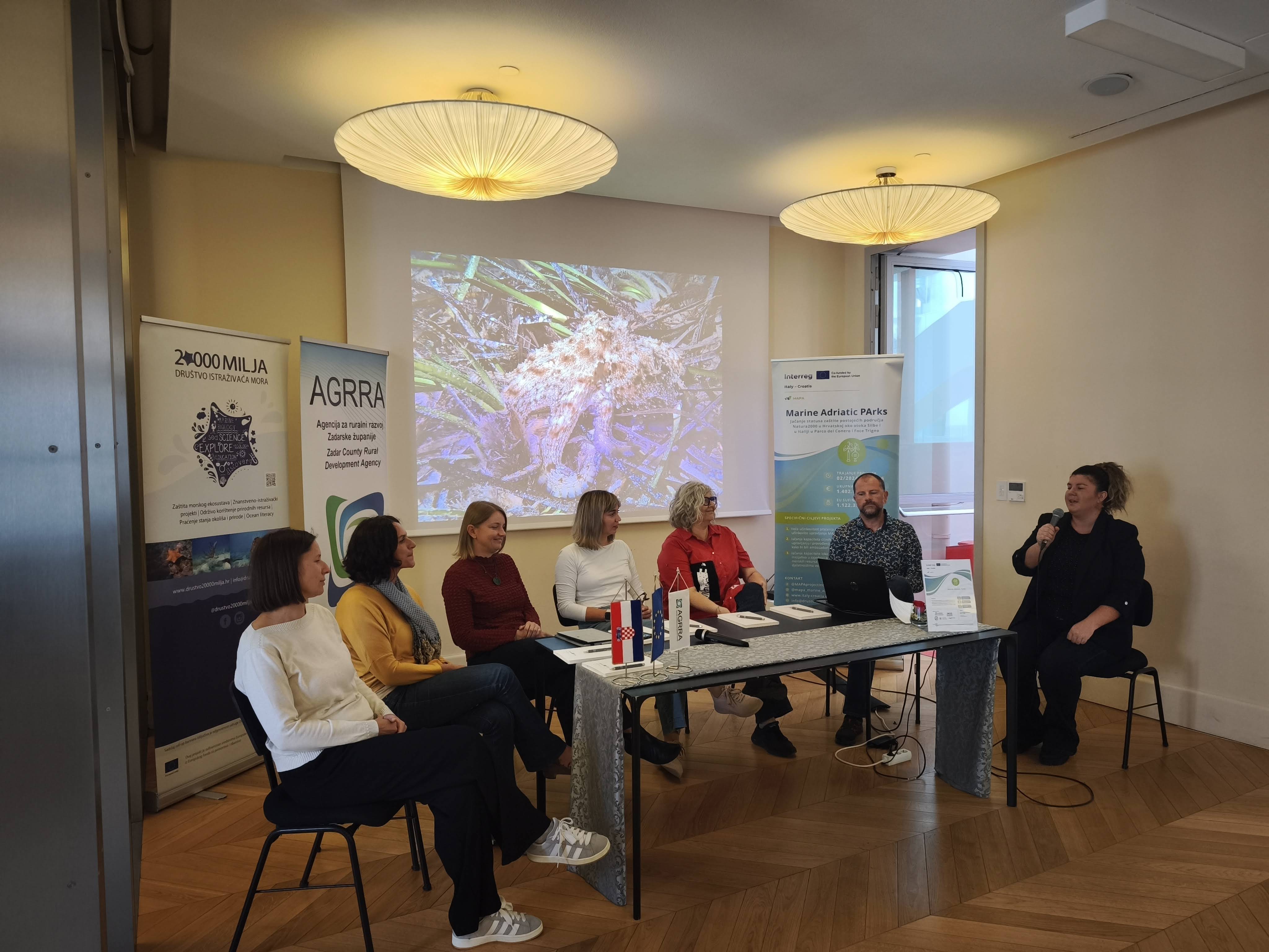 On 17 October 2025, the MAPA joined a celebratory week of EU Open Days of EU Projects with a Blue Café event in Zadar titled “Protected Areas for Islands”. Held in the Multimedia Hall of the Rector’s Palace, the gathering was co‑organised by AGRRA and 20000 Leagues.