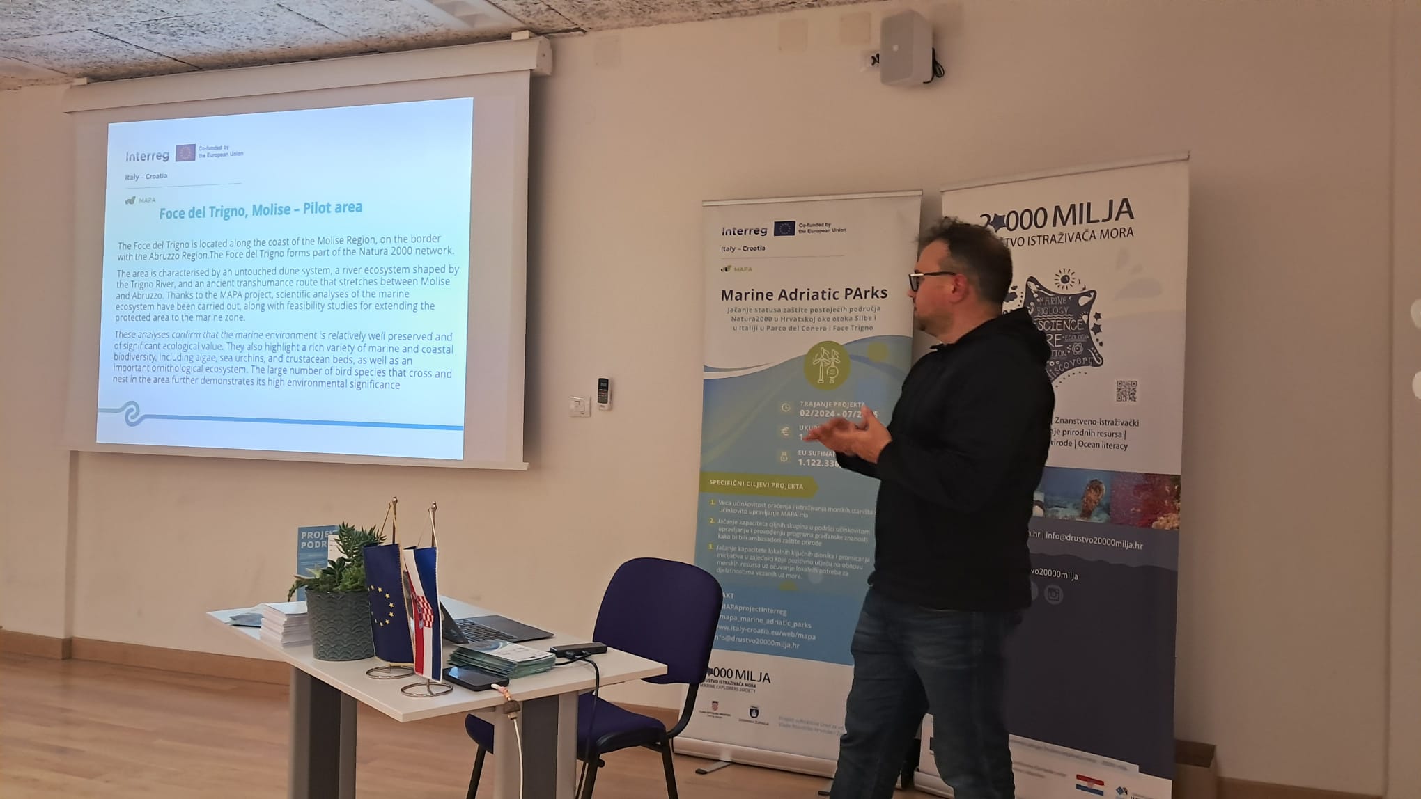 The event was co-created by the whole MAPA partnership, with 20000 Leagues coordinating on the Croatian side and project partners from Italy actively involved in preparation and play. After a brief round of introductions moderated by Barbara Čolić, all partners presented their roles, pilot sites and key achievements so far: work on Silba Reefs, Conero, Foce del Trigno and other areas; youth programmes, citizen‑science dives, Blue Cafés, and efforts to advance new reserve proposals.