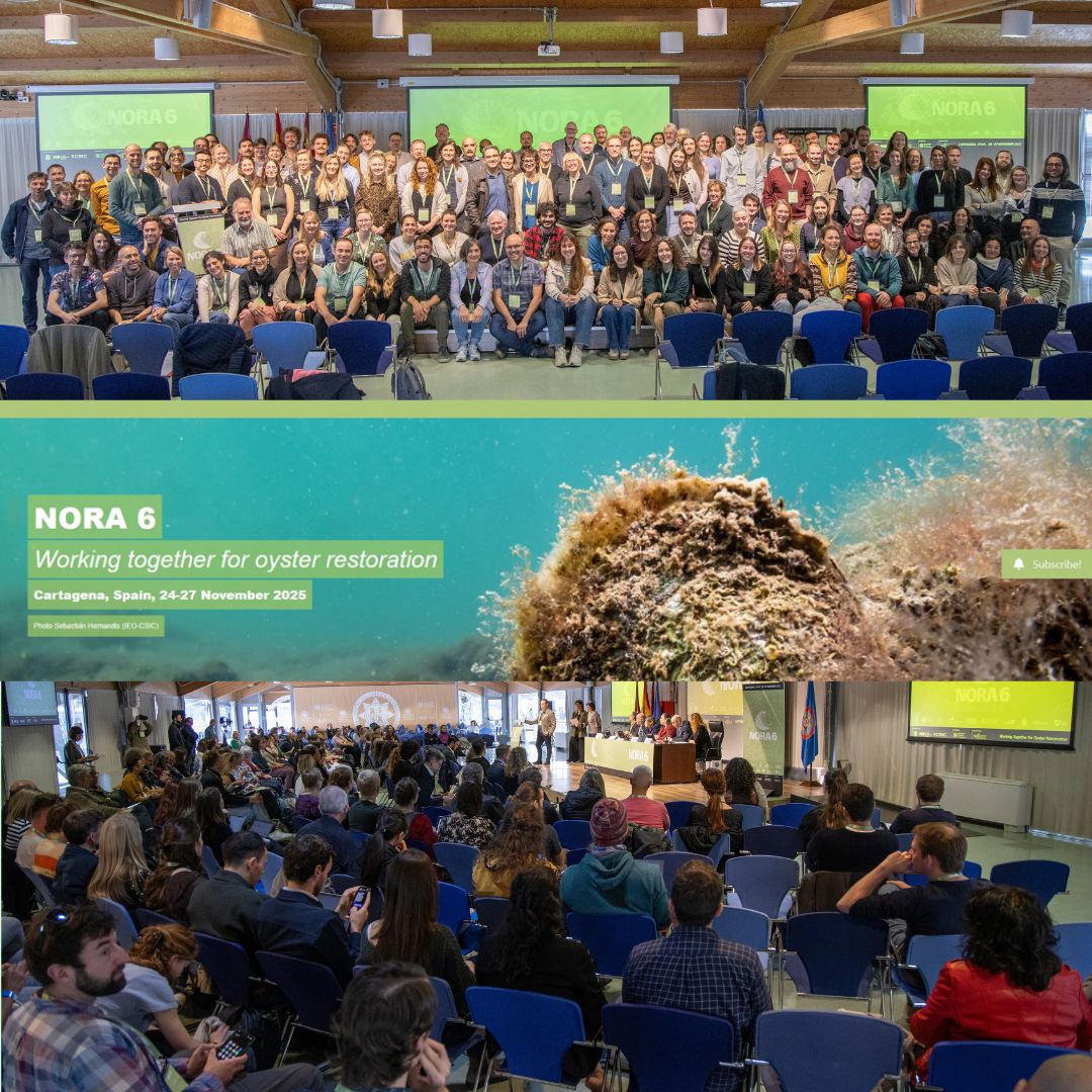 From 24 to 27 November, around 180 representatives of the international NORA (Native Oyster Restoration Alliance) community gathered in Cartagena, Spain, at the Faculty of Business Sciences of the Universidad Politécnica de Cartagena for the sixth edition of the NORA Conference. This event represents the main international forum dedicated to the restoration and conservation of native oysters and brings together leading experts, researchers, policymakers and stakeholders from across Europe and beyond to discuss scientific advances, management strategies and collaborative approaches aimed at restoring Ostrea edulis populations.