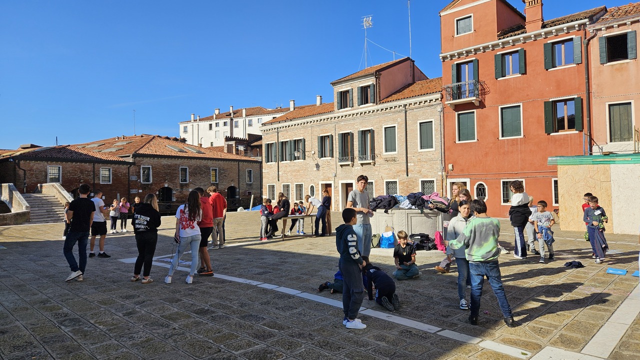 This fun and educational event, open to the public, took place on October 11 in San Trovaso Square. Fourth-grade children from the San Girolamo Primary School in Venice played the game, while many curious passersby stopped to see what it was about.