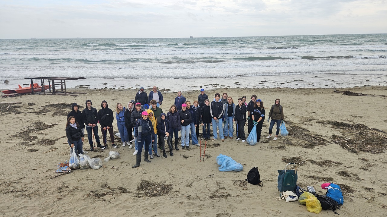The students took part in a beach cleanup at Alberoni Beach on Lido di Venezia, organized by the Venice Lagoon Plastic Free association. The goal was to collect as much plastic waste as possible in an hour. Students and teachers were divided into two groups, “Pink Panther” and “Blue Lagoon”, and together collected nearly 20 kilograms of small plastic items.