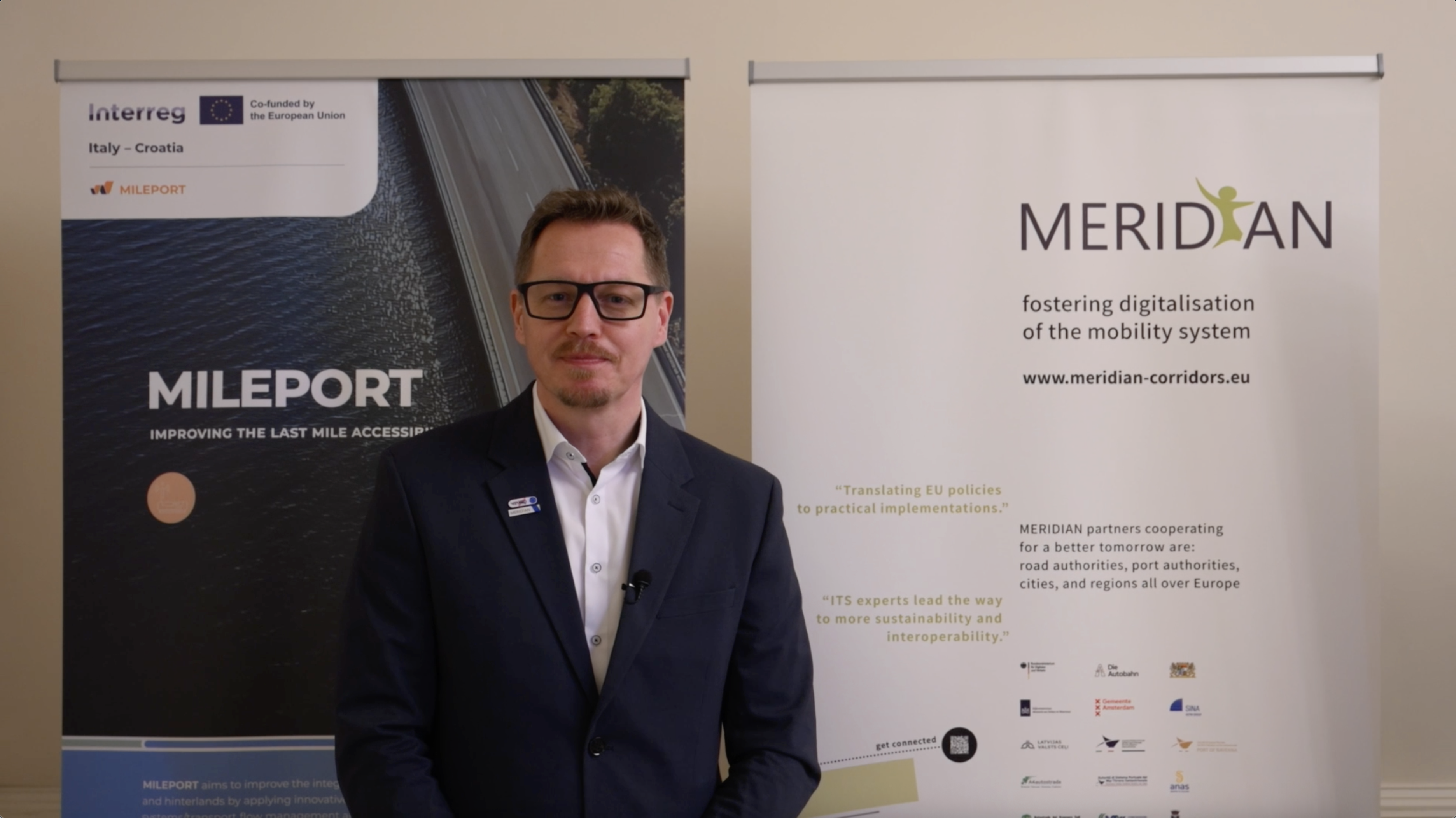 Björn Siebert expresses satisfaction in participating in the event, highlighting the strong thematic alignment with his own work. Also MERIDIAN project, which he coordinates internationally, focuses on transport digitalisation and includes several port authorities within its partnership, reinforcing the importance of integrated and multimodal European transport networks.