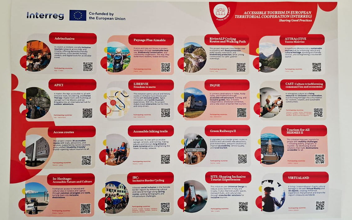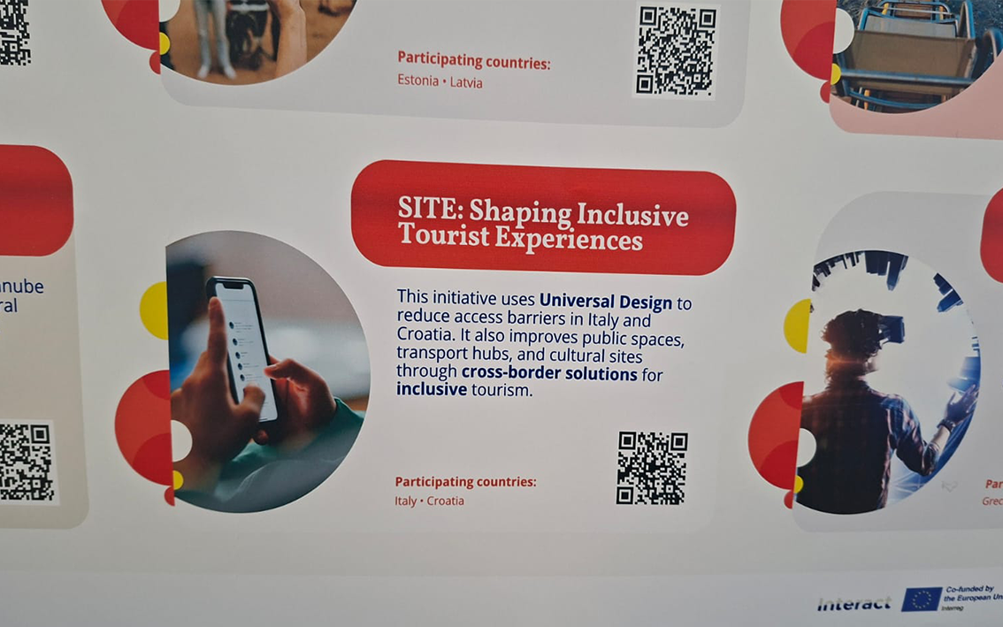 On 7 October, SITE was featured at the “Destinations for All” Summit in Turin, thanks to an invitation from the INTERACT Programme. The project was part of a curated stand showcasing Interreg initiatives focused on accessible tourism. The event gathered stakeholders from across Europe to exchange best practices and build synergies around inclusive travel. SITE's presence confirmed its positioning as a reference project in the field, contributing to broader efforts in shaping tourism that is not only sustainable but truly accessible.