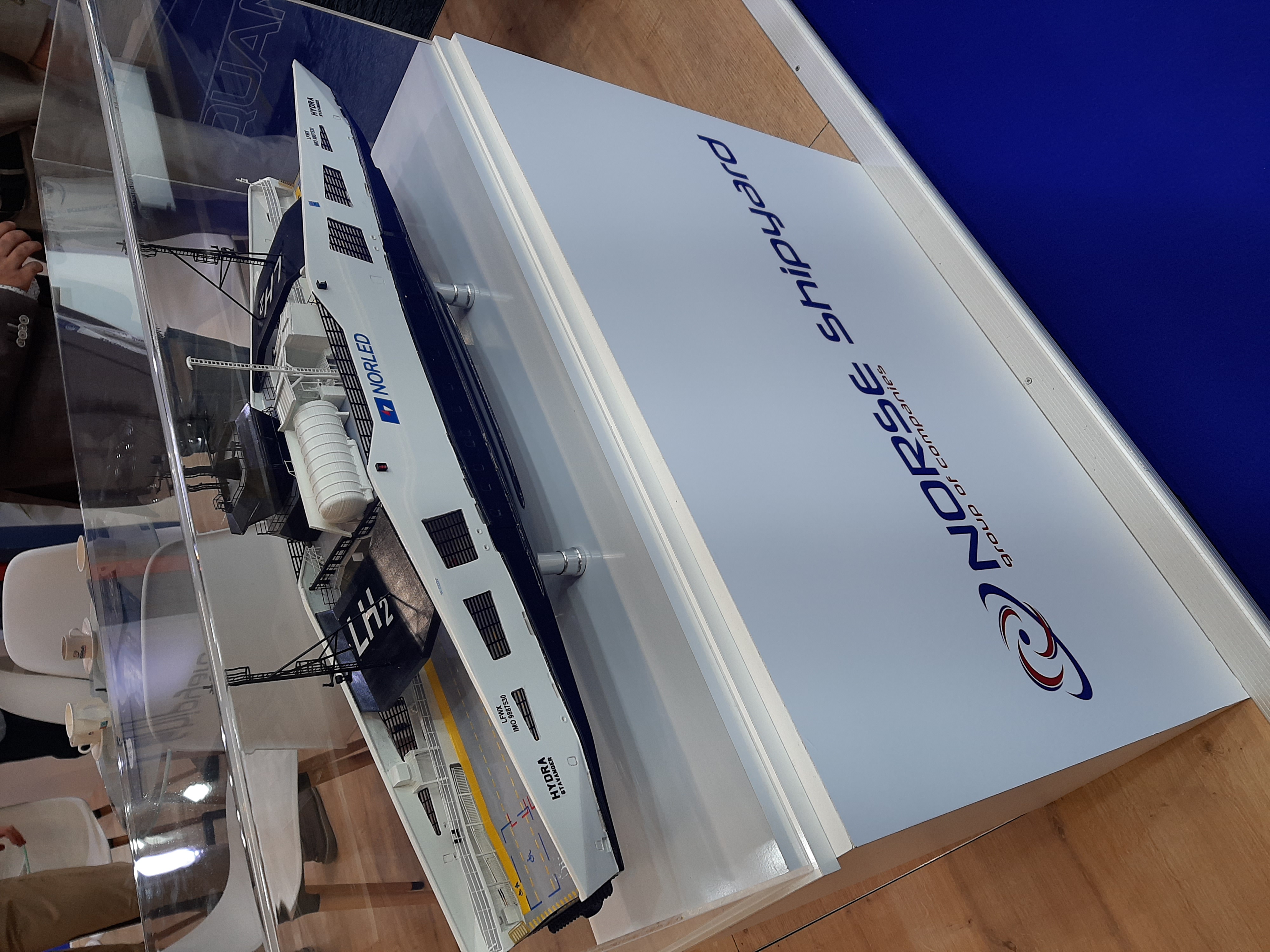 The MF Hydra model, built by the Turkish shipyard Norse, recalling a study visit to Norway, where TransH2 partners had the opportunity to go onboard this ferry.